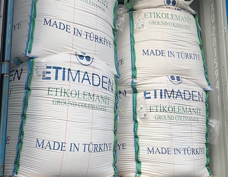 硼钙石也是一种优良的阻燃剂。当硼钙石受热达到一定温度时,会缓慢释放结晶水,吸收大量热能,降低燃烧面温度;释放出的水份还能稀释空气中的氧,抑制燃烧反应;产生的氧化硼玻璃状薄膜,可覆盖于聚合物上,起到隔热阻氧的作用。与有机卤化物复配使用时,阻燃效果更为显著。